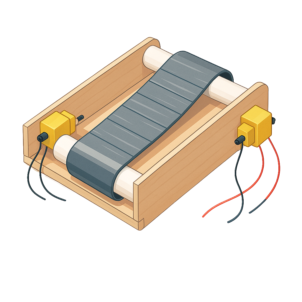 PVC pipe axles + wood base + duct tape belt
